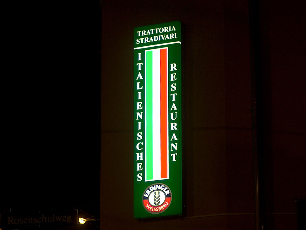 Für Ihre beleuchtete Werbung bieten wir Ihnen individuelle Konzepte und Lösungen an - ganz nach Ihren Wünschen und Vorstellungen. Grundsätzlich unterscheidet man zwischen selbstleuchtender und angestrahlter Lichtwerbung.
